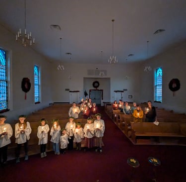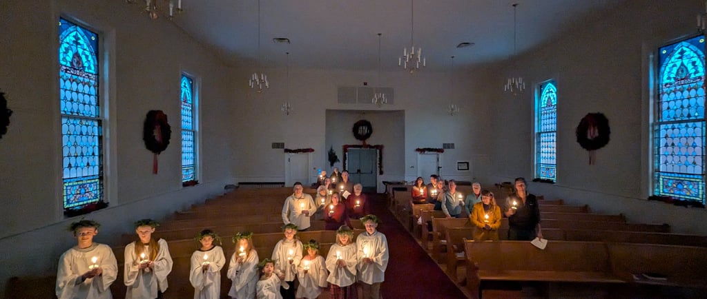 Two years ago, we started celebrating this Swedish holiday which honors the patron saint of light. The church school children will wear robes of white and crowns of pine boughs and present plates of saffron buns as we sing the lovely St. Lucia hymn and share readings and prayers of the season. After the service, you will be invited to eat the saffron buns as well as traditional ginger biscuits.